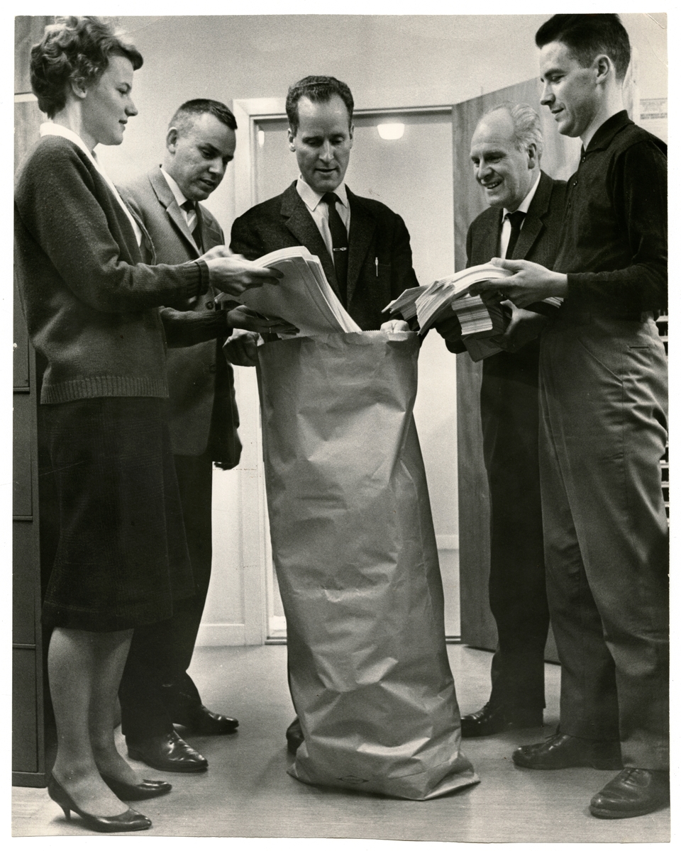 Dokument slänges på ett kontor vid Trafikaktiebolaget Grängesberg - Oxelösunds Järnvägar, TGOJ.