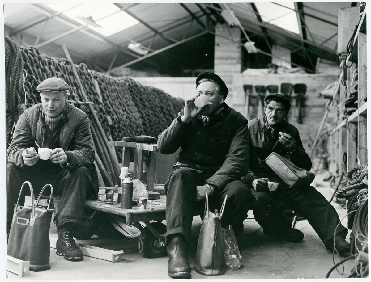 Kaffepaus, från vänster Göran Johansson, Karl-Erik Karlsson och Arthur Thunberg