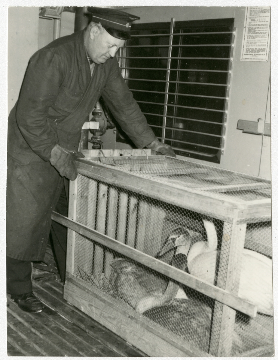 Titel: Bur för transport av fåglar vid fraktgodsavdelning i Eskilstuna.