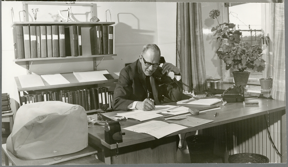 Förste Järnvägsexpeditör Arthur Waine på sitt kontor.