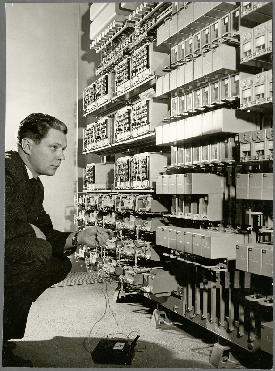 Personal utför mätning på ställverk.