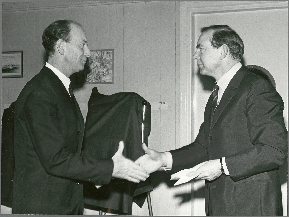 Titel: K Lindgren mottar belöning av Björkman.
