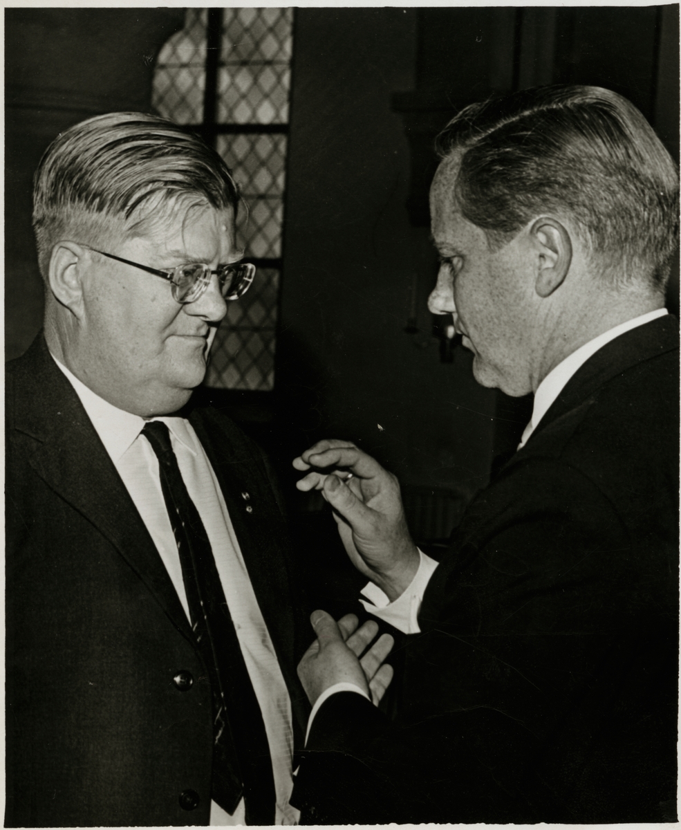 Titel: Karl Birger Johansson verkstadsförman får nål av Nelander.