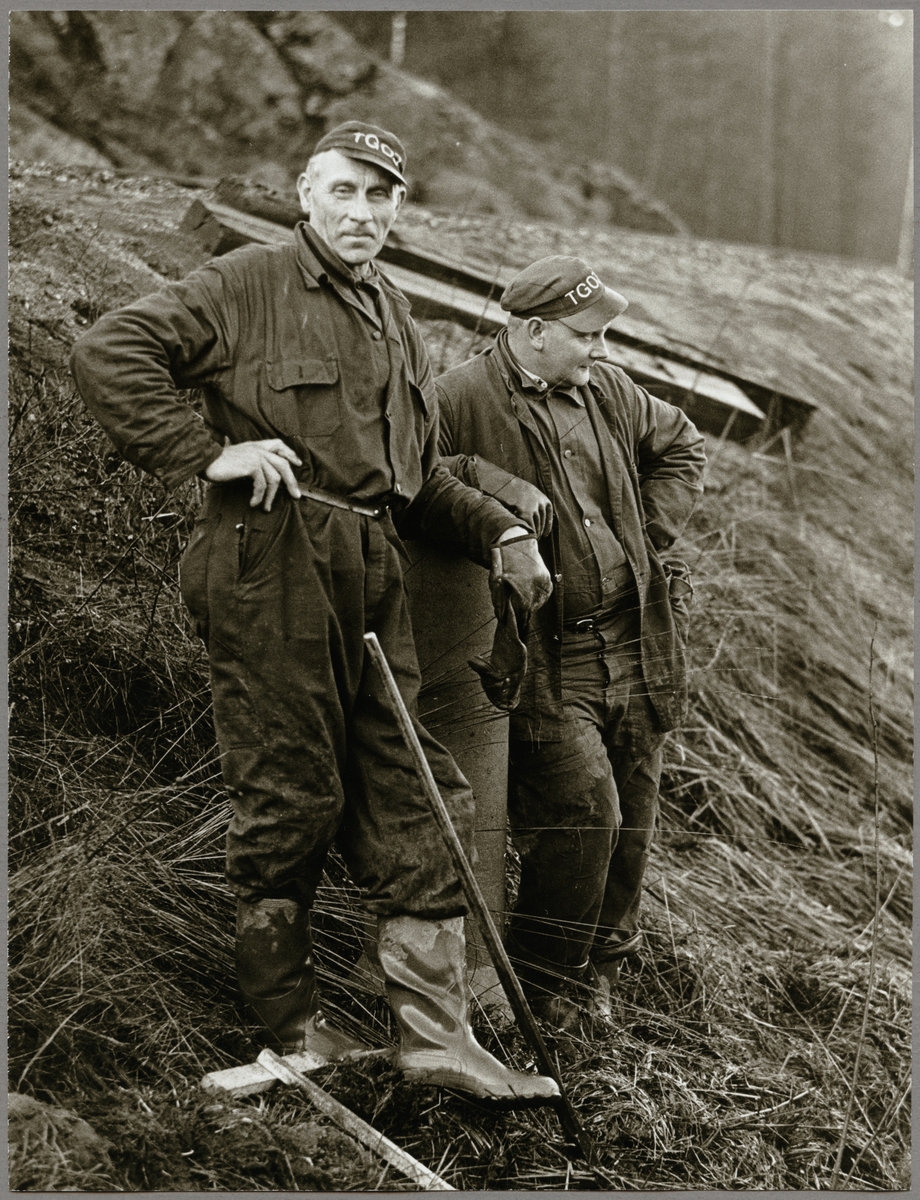 Personal vid underhållsarbete utmed järnvägsspåret på sträckan mellan Harsjön och Bälgviken 1967.