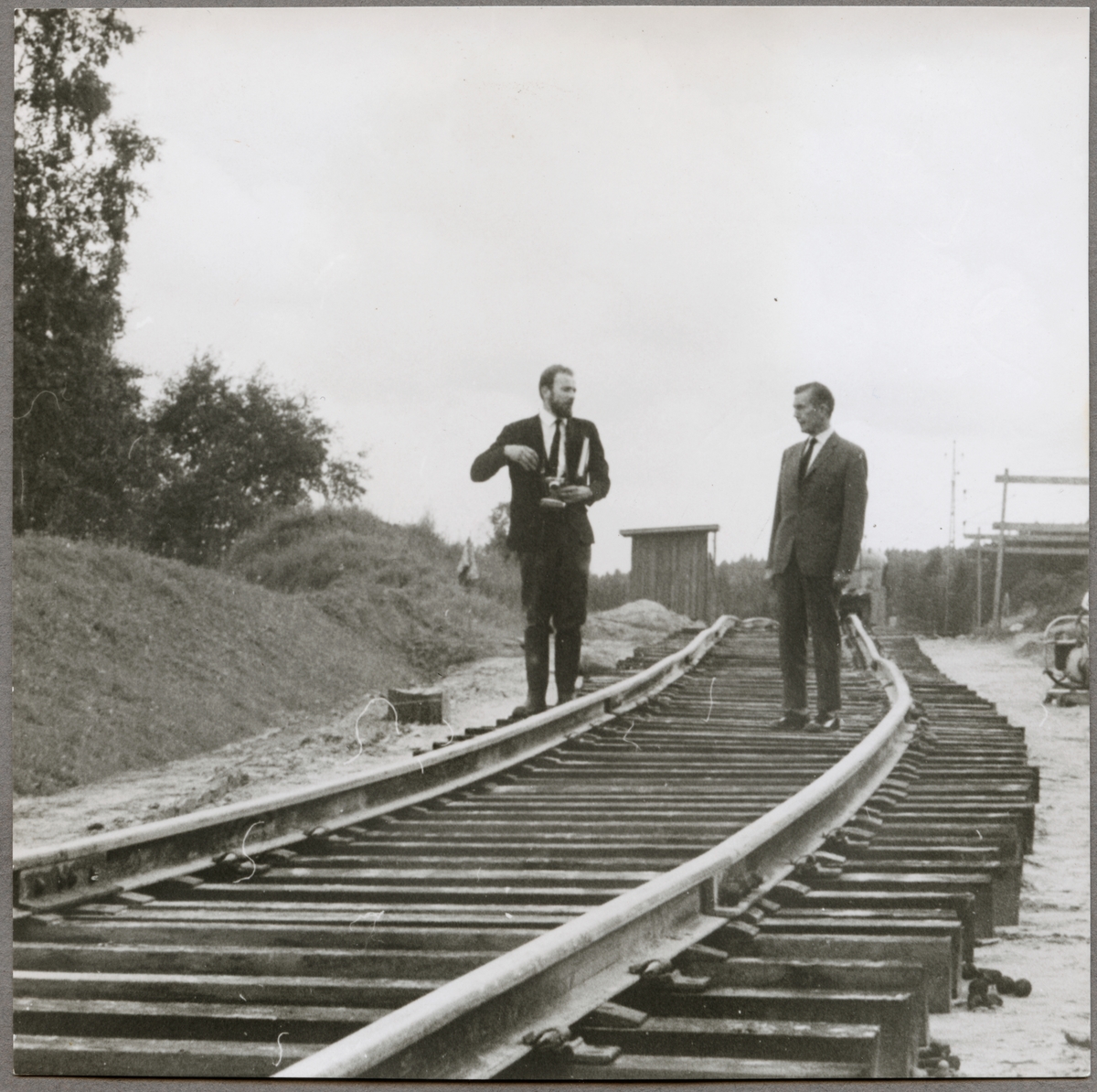 Titel: Arkitekt Karlsson och Fbiö S. Thorén på Bångbrospåret 1963.