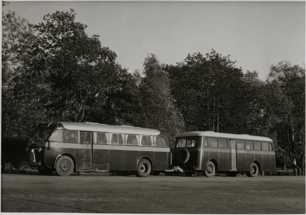 Trafikaktiebolaget Grängesberg - Oxelösunds Järnvägar, TGOJ buss med släpvagn.