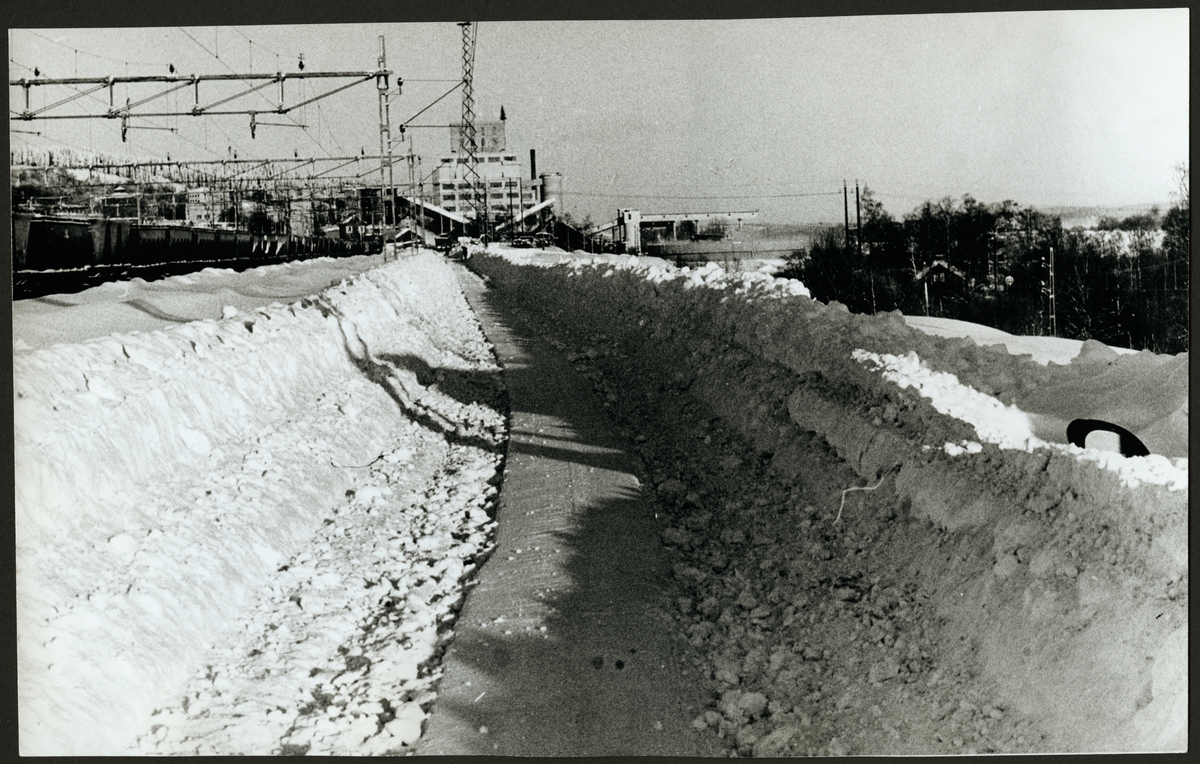 Titel: Snö på Grängesbergs malmbangård 1966.