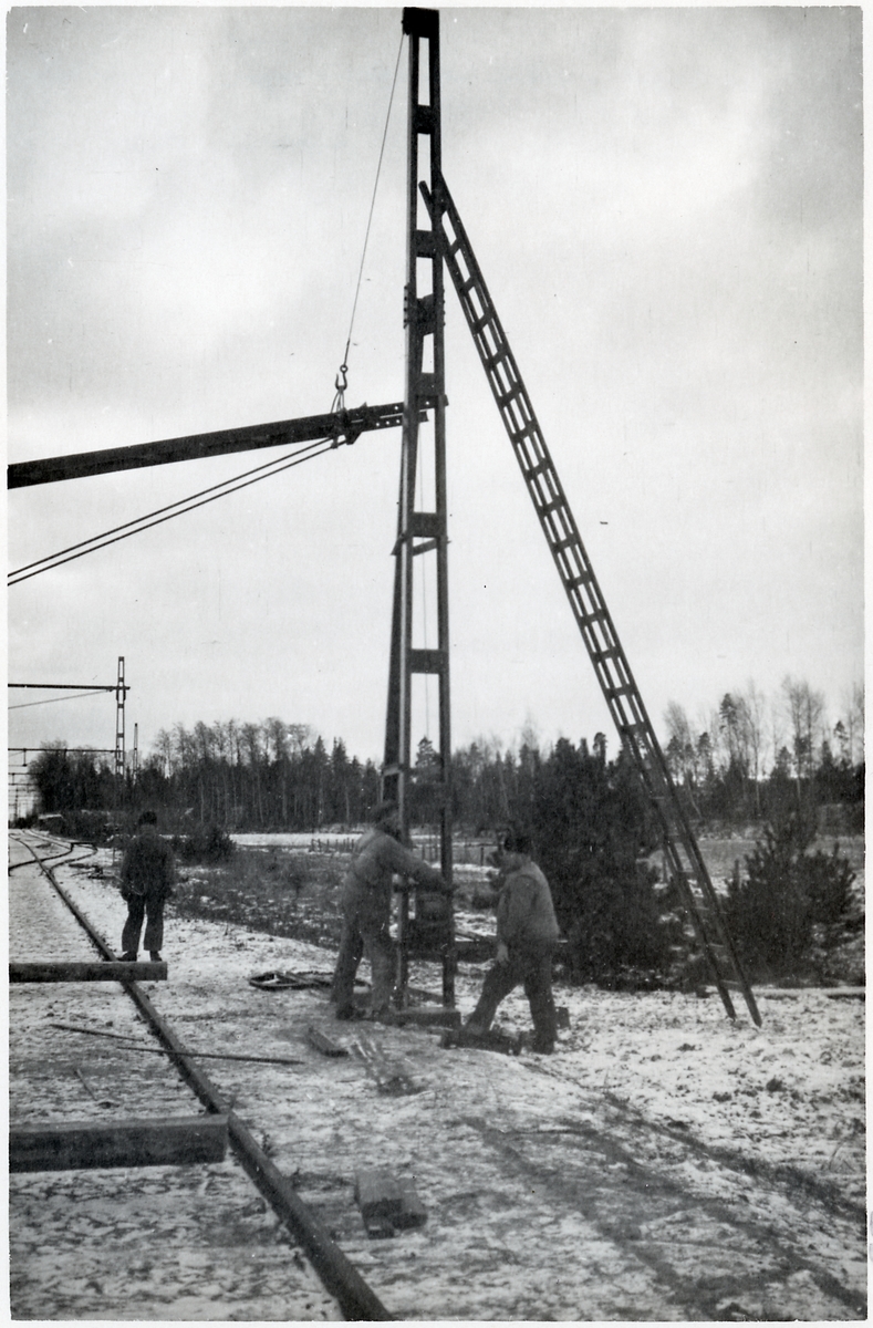 Titel: Montering av ledningsbrygga. På linjen mellan Hallsberg - Örebro.