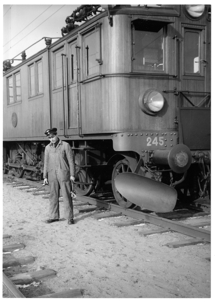 Stationskarl Åke Åkesson framför Statens Järnvägar, SJ Dg 245.