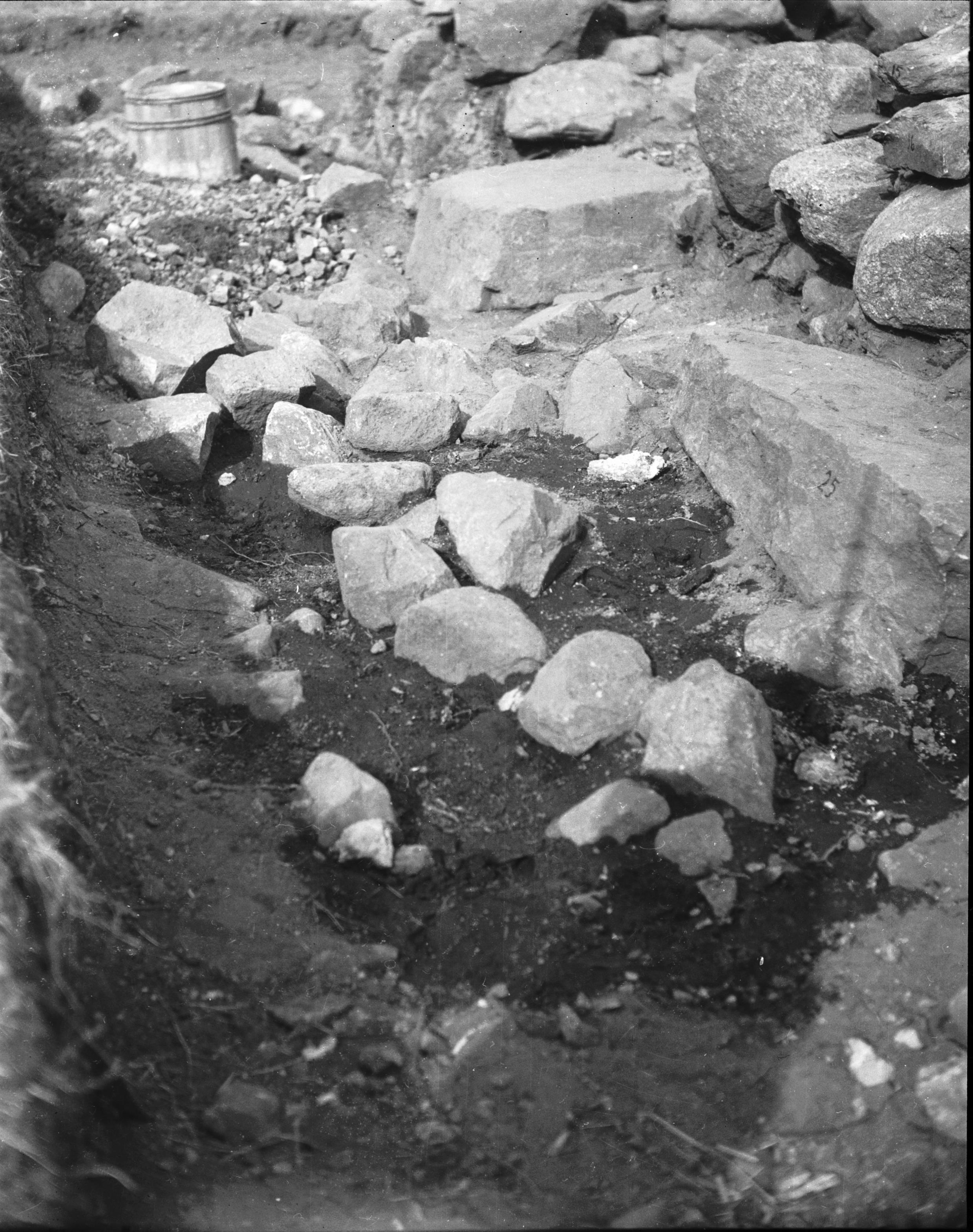Klosterruinen, A - huset, stensättning framför västra sidan, mot sydväst.