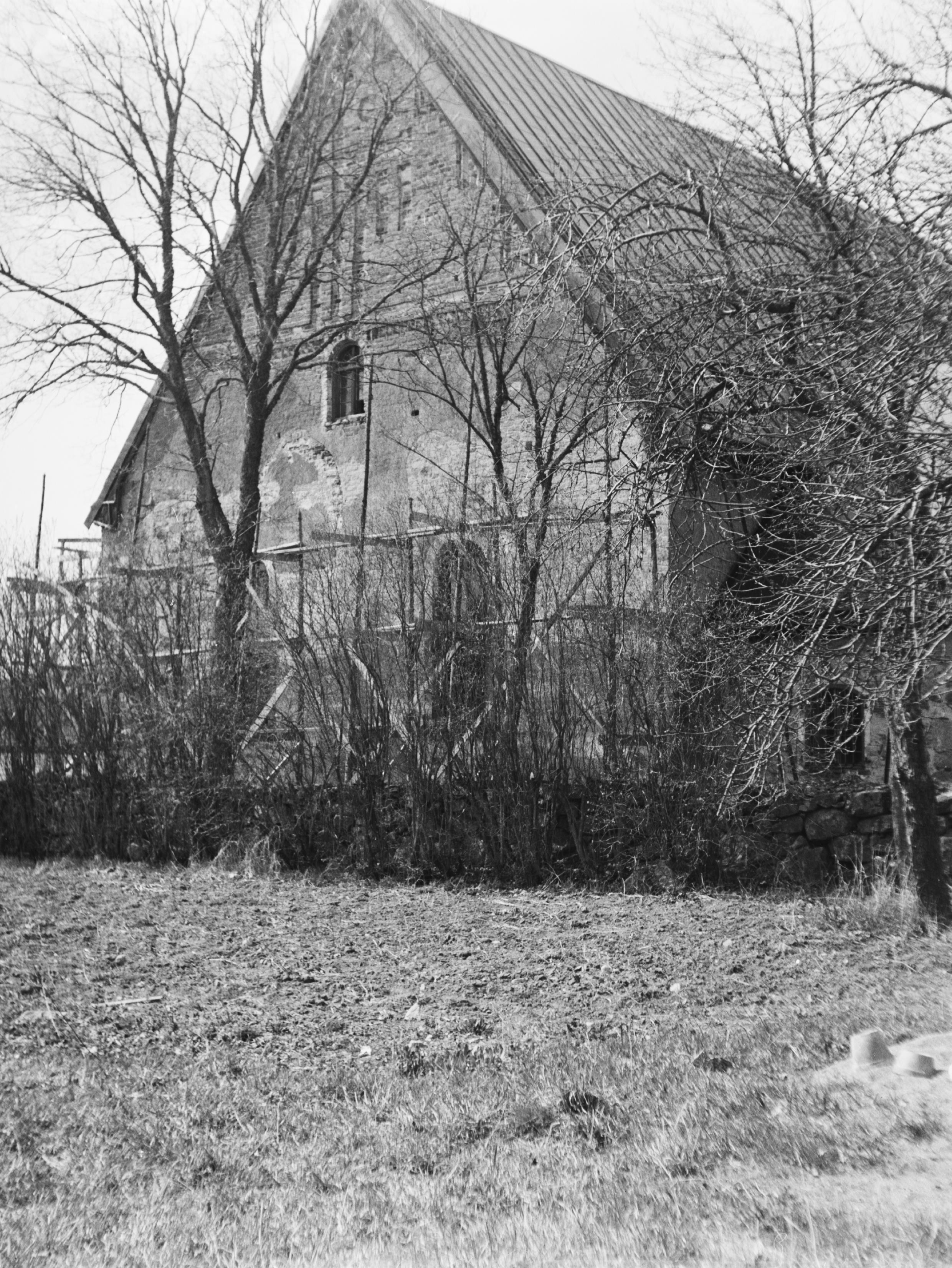Kyrkans gavel mot nordöst. Spår av äldre fönster och blinderingar.