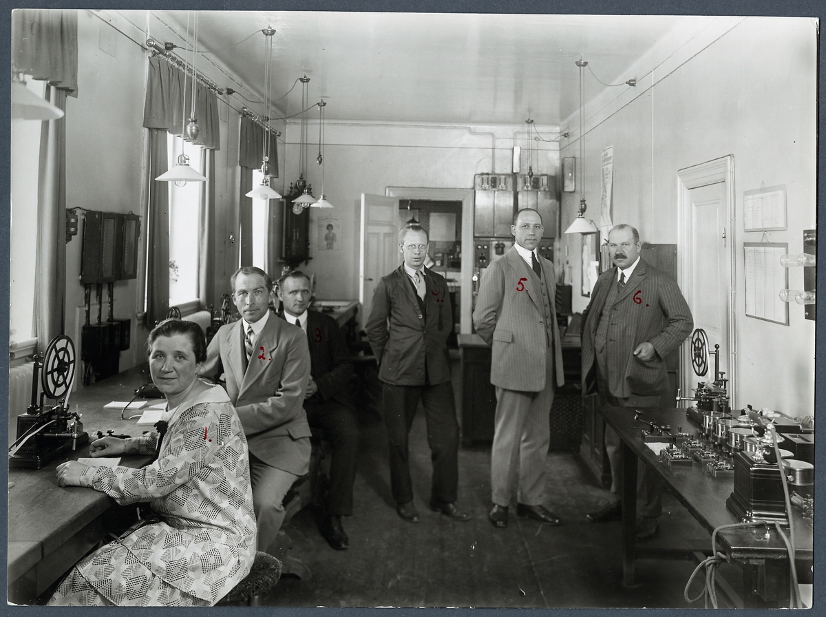 Titel: Telegrafexpeditionen vid Norrköping Central med personal.