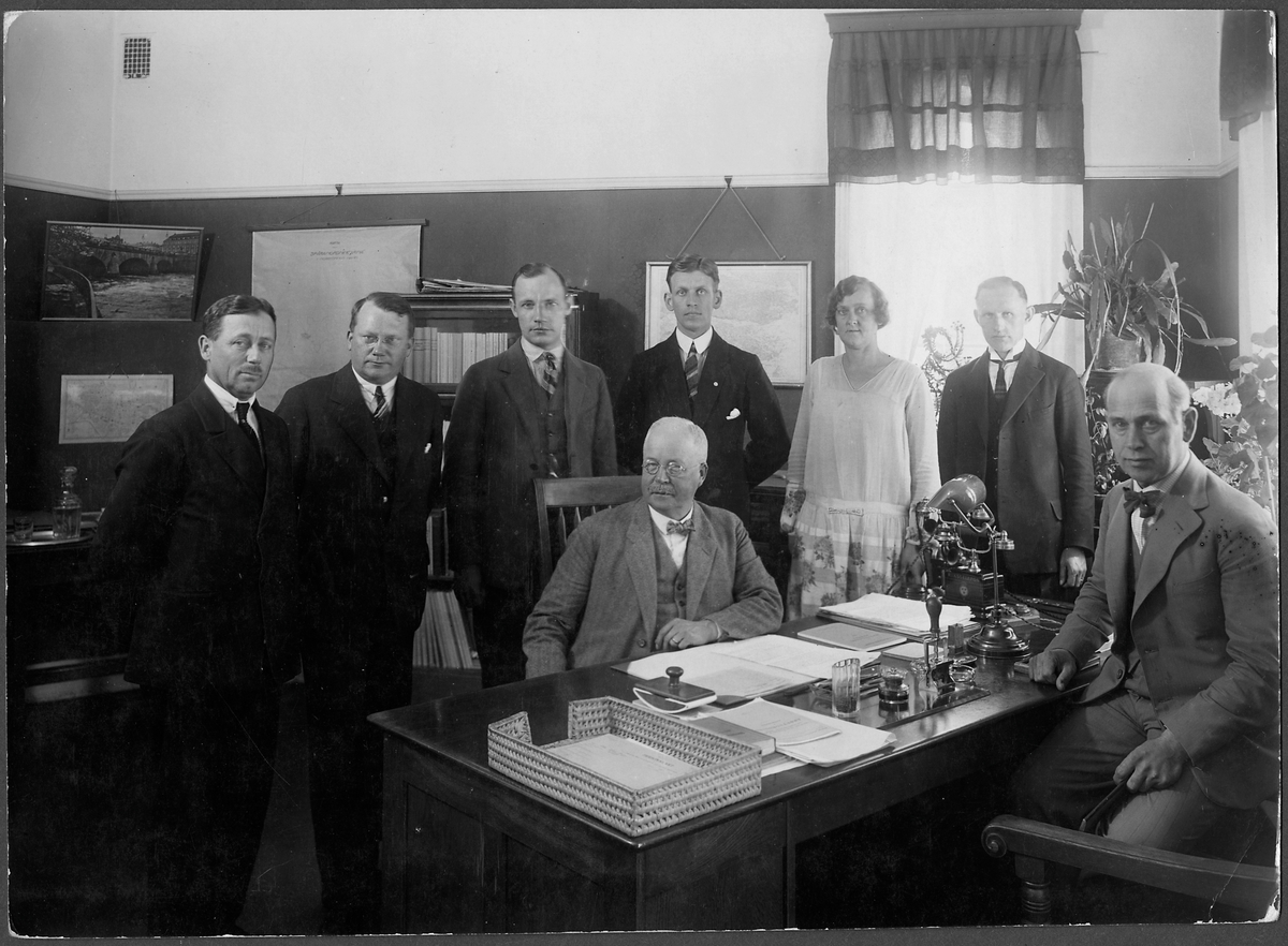 Titel: Trafikinspektörsexpeditionen vid Norrköping Central med personal.