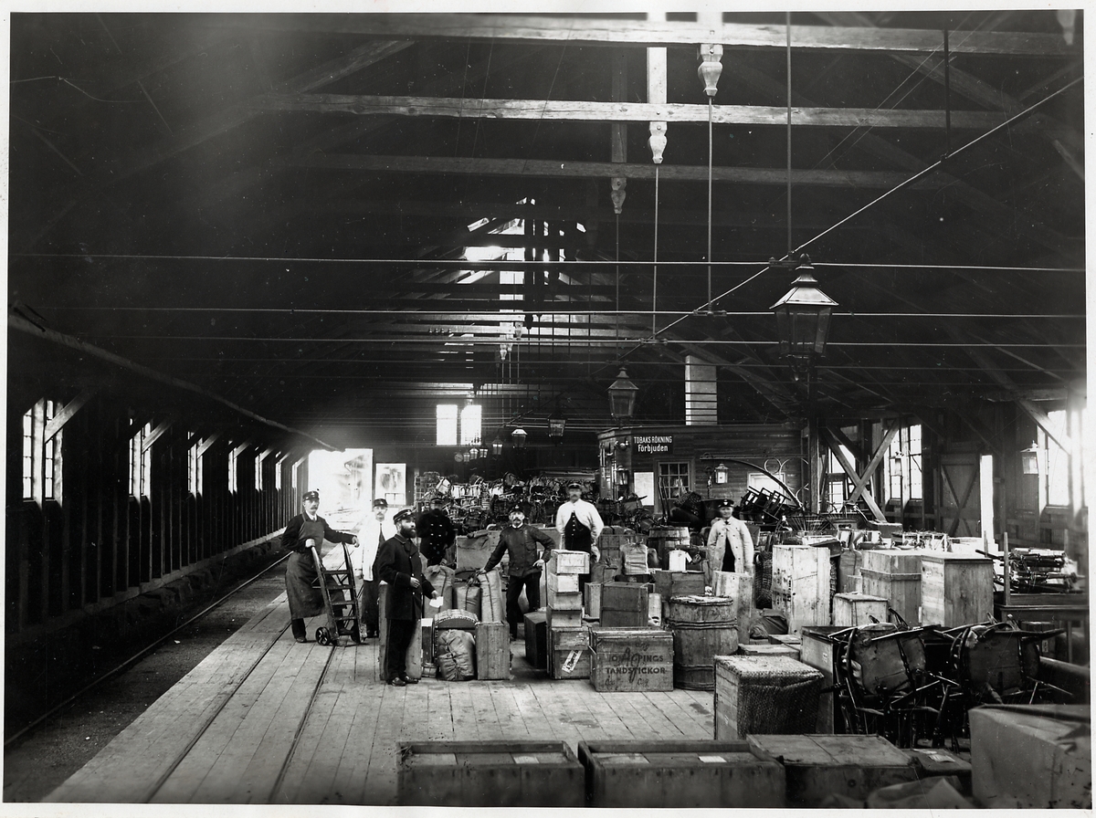 Personalbild, ankommande godsmagasinet vid f.d. Stockholm Norra station, sedemera Norra Bantorget.