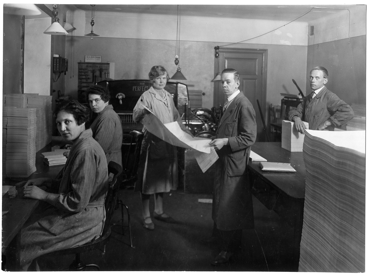 Titel: Bokbinderiets personal vid Tomteboda station.