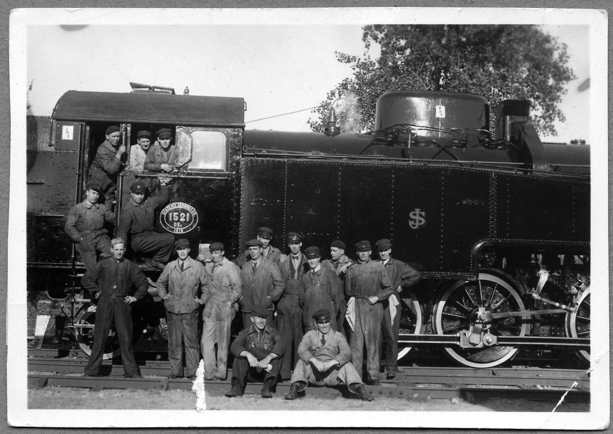 Statens Järnvägar, SJ OKe 1521 med verkstadspersonal vid SJs centrala verkstad i Örebro 1938.