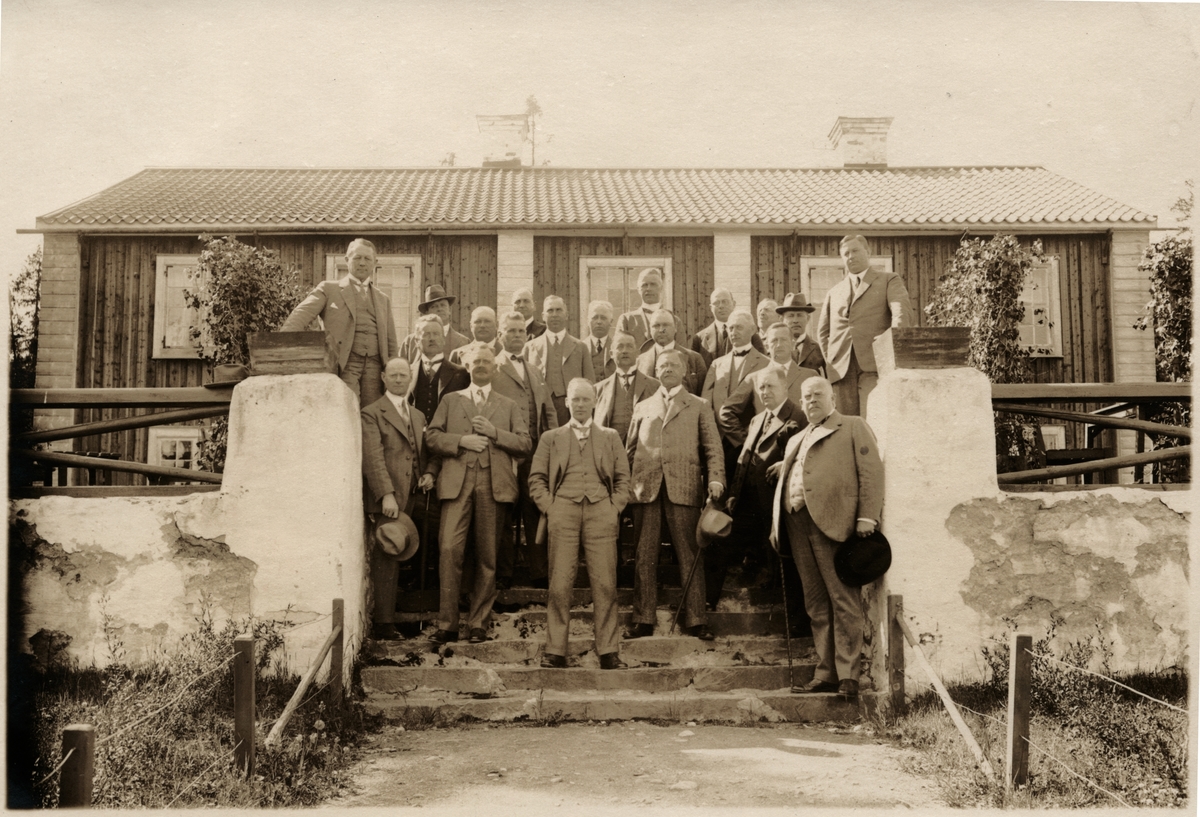 Titel: Svenska Enskilda Järnvägars Trafikinspektörsförening utanför Spjutegården i Härnösand.