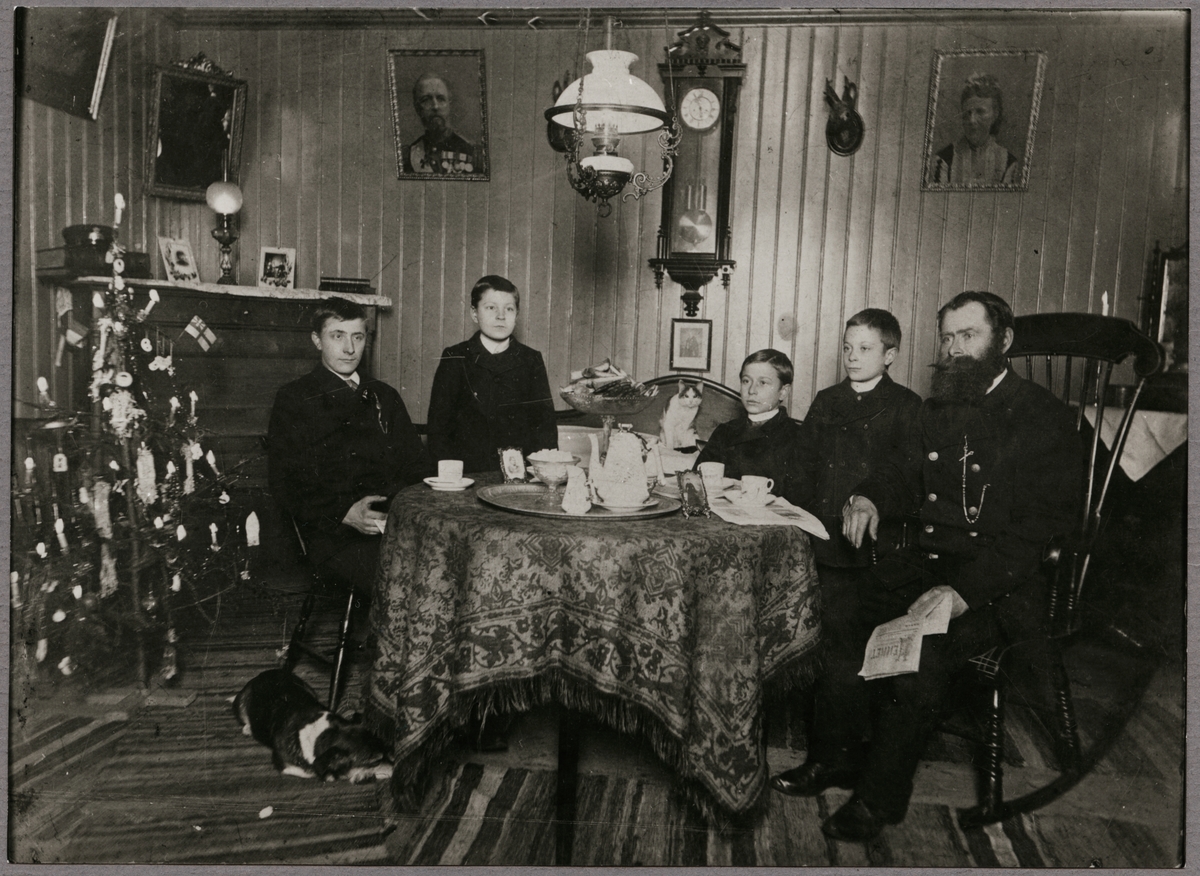 Titel: Johan August Johansson med familj i banvaktstugan vid linjen Ånge - Sundsvall.