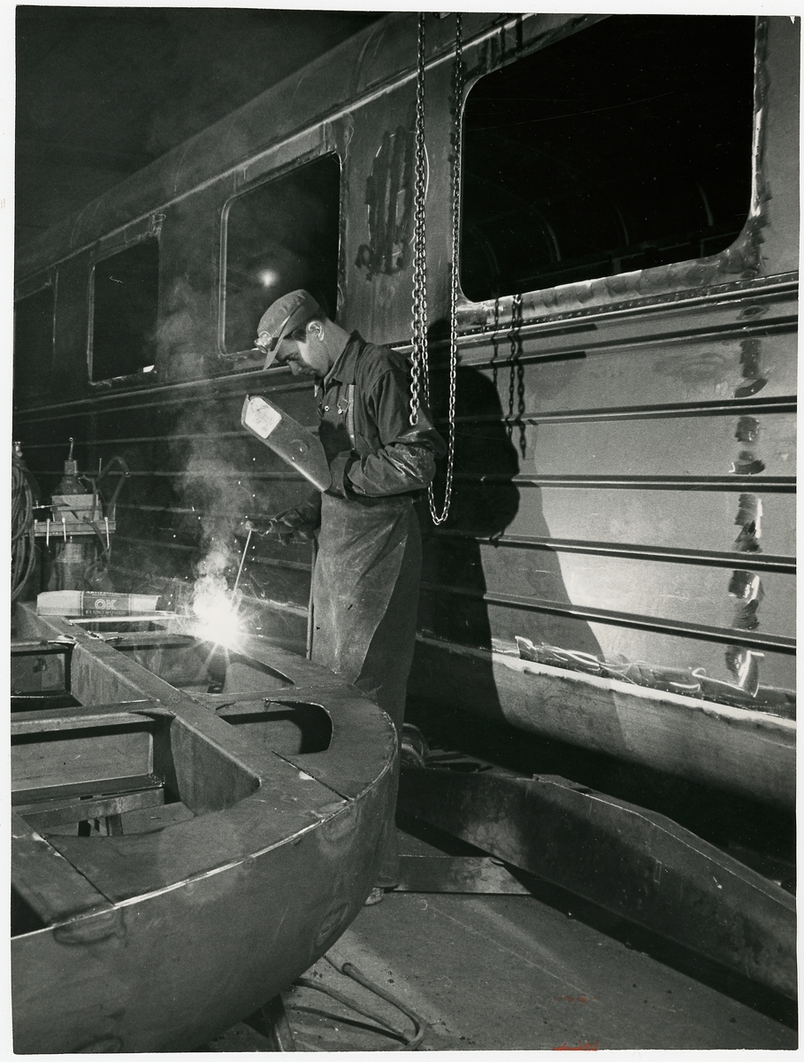 Rälsbusstillverkning hos Hilding Carlsson Mekaniska Verkstad i Umeå.