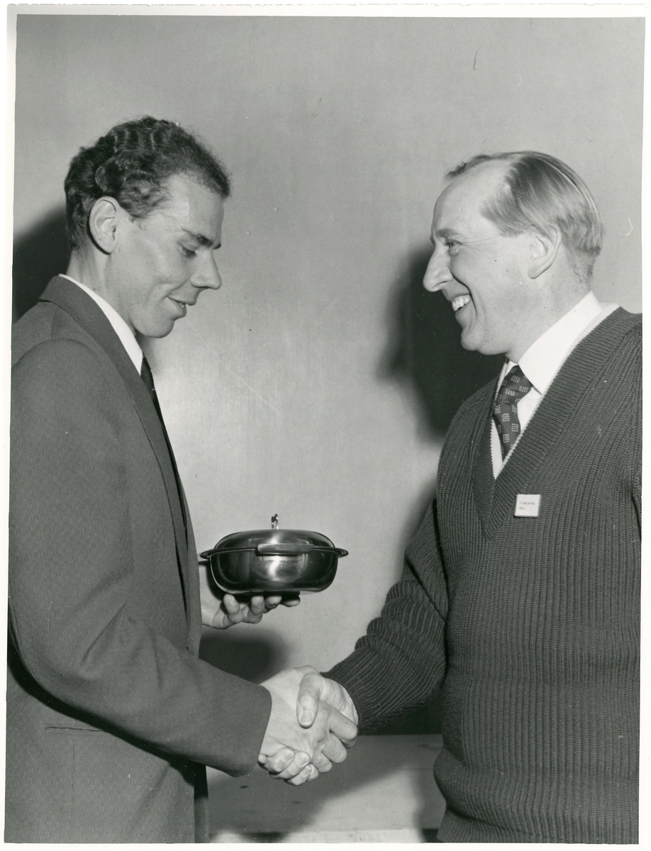Prisutdelning, G Thorberg får sitt pris från Trafikchef Åke Karlström.