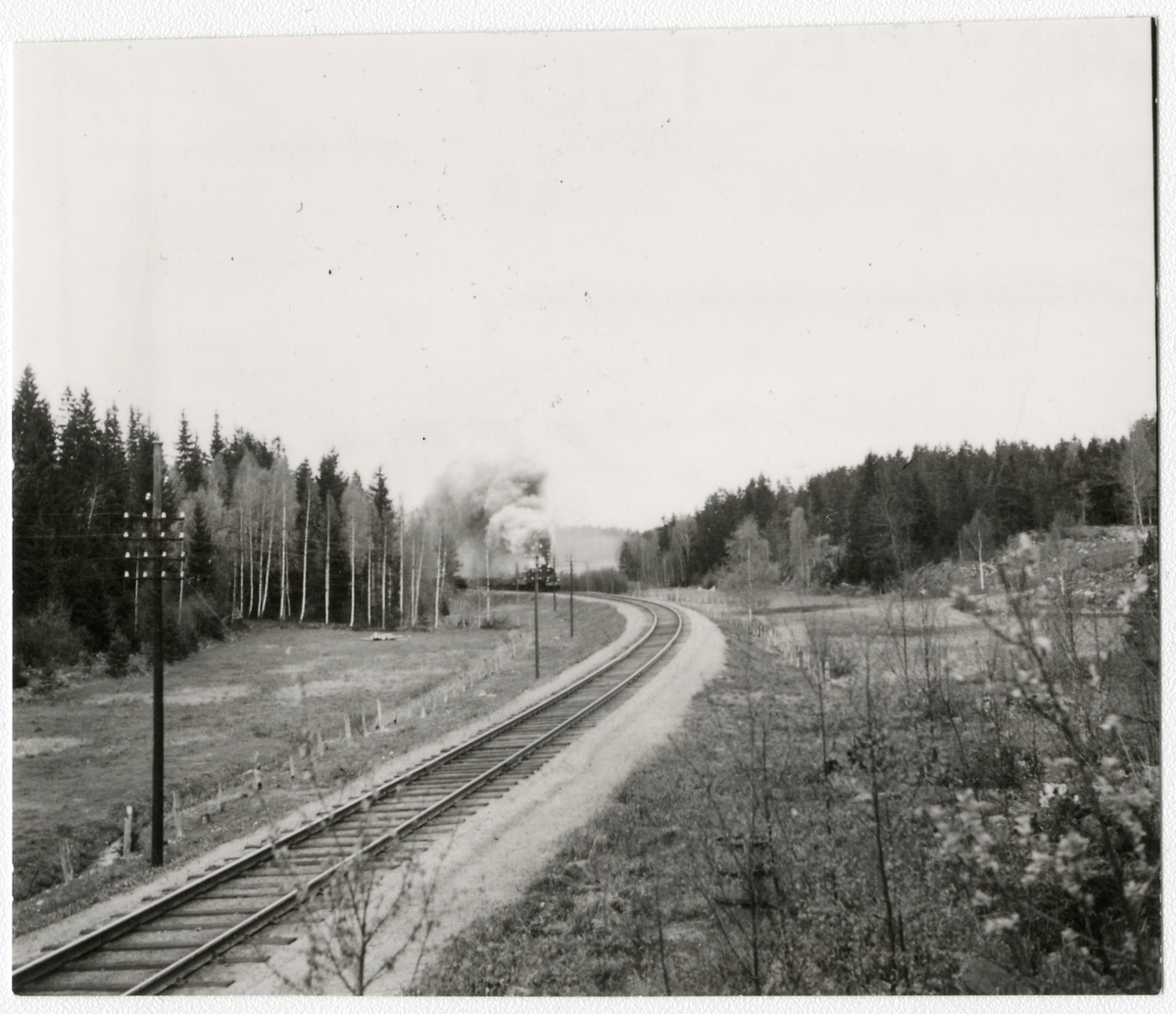 Ett ånglok frånTrafikaktiebolaget Grängesberg Oxelösunds Järnvägar, TGOJ, på linjen.