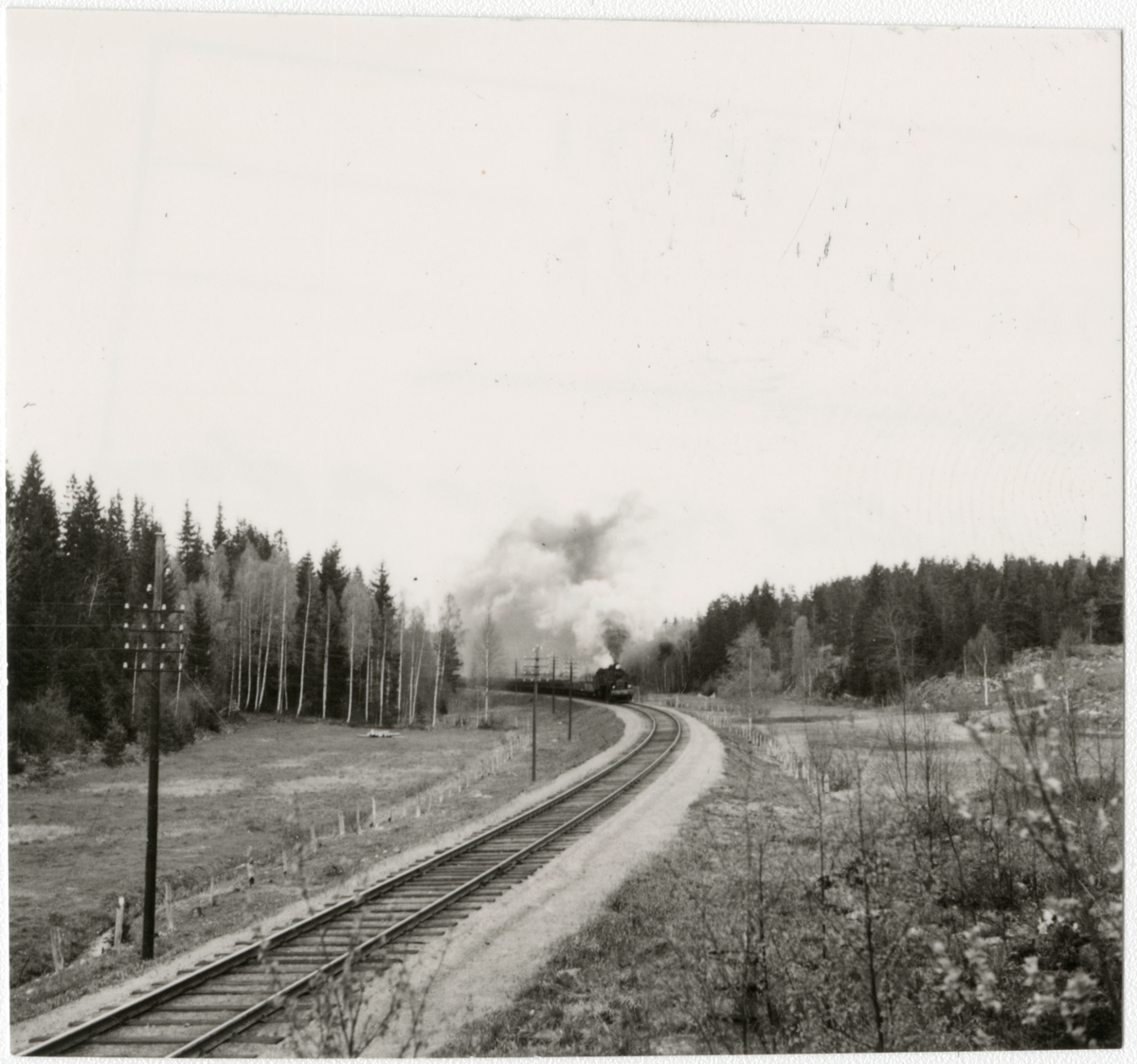 Ett ånglok frånTrafikaktiebolaget Grängesberg Oxelösunds Järnvägar, TGOJ, på linjen.
