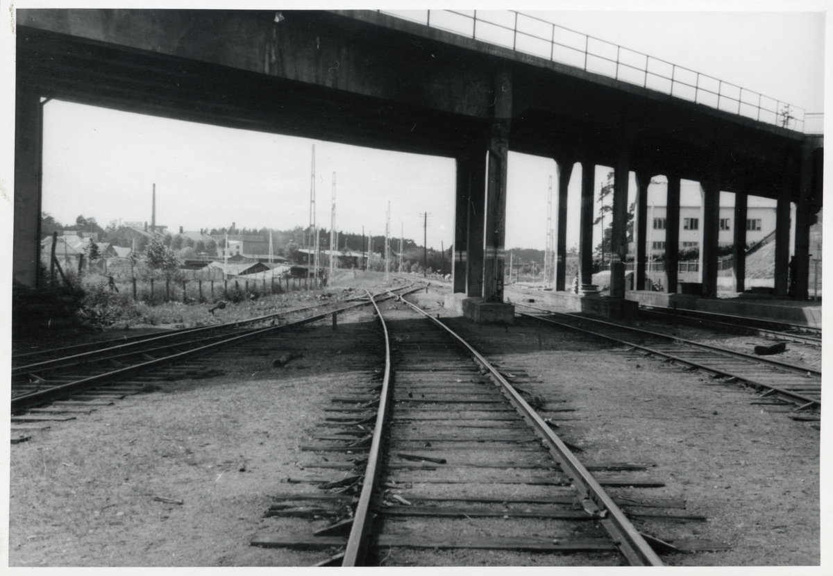 Titel: Bangård och vägbro vid Sundbyberg Norra. Pågående elektrifieringsarbete.
