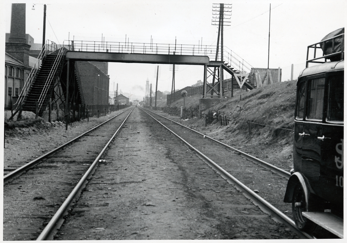Titel: Gångbro över spåret i närheten av Helsingborg station.