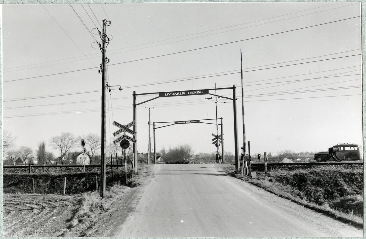 Titel: Järnvägsövergång i Fosieby N. Sedd från gatan.