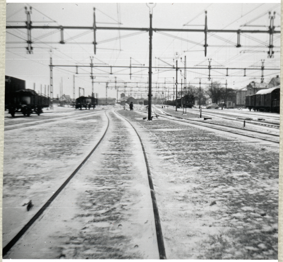 Titel: Bangården vid Klippans station. I riktning mot järnvägsövergången vid Bruksgatan.