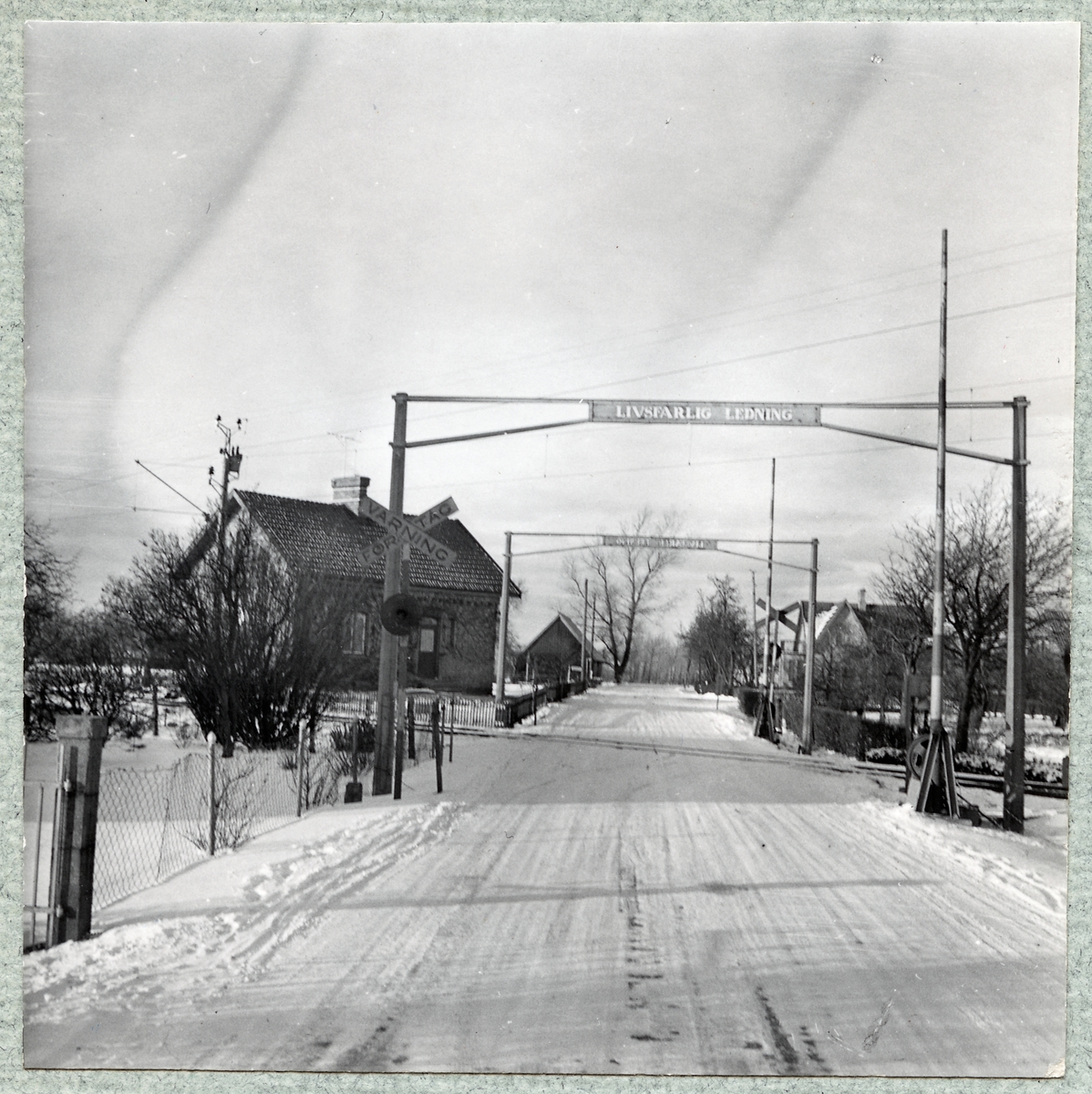 Titel: Järnvägsövergång väster om stationen.Bygganden till vänster är en gammal banvaktstuga.