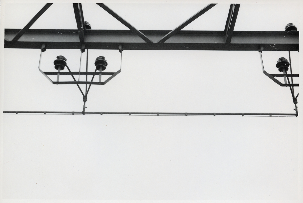 Detalj, kontaktledning över järnvägsbron i Töreboda.