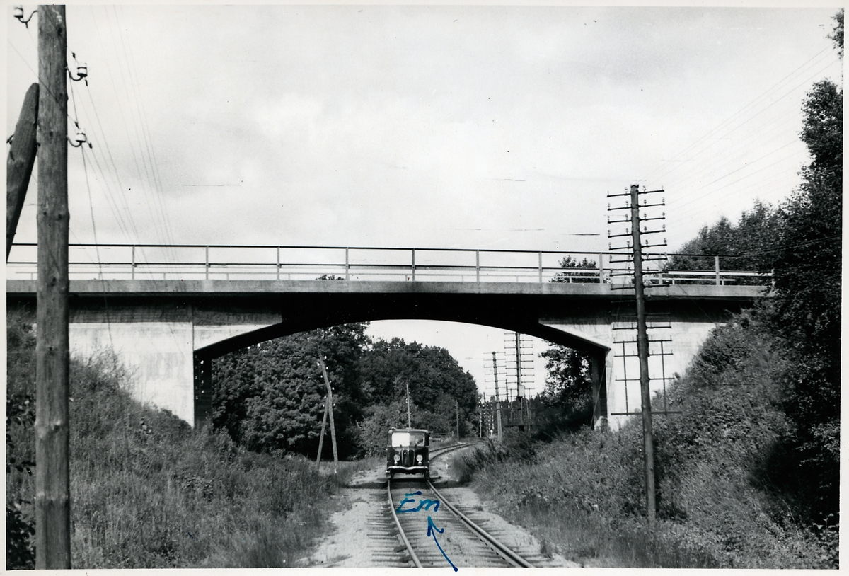Titel: Vägbro över järnväg.