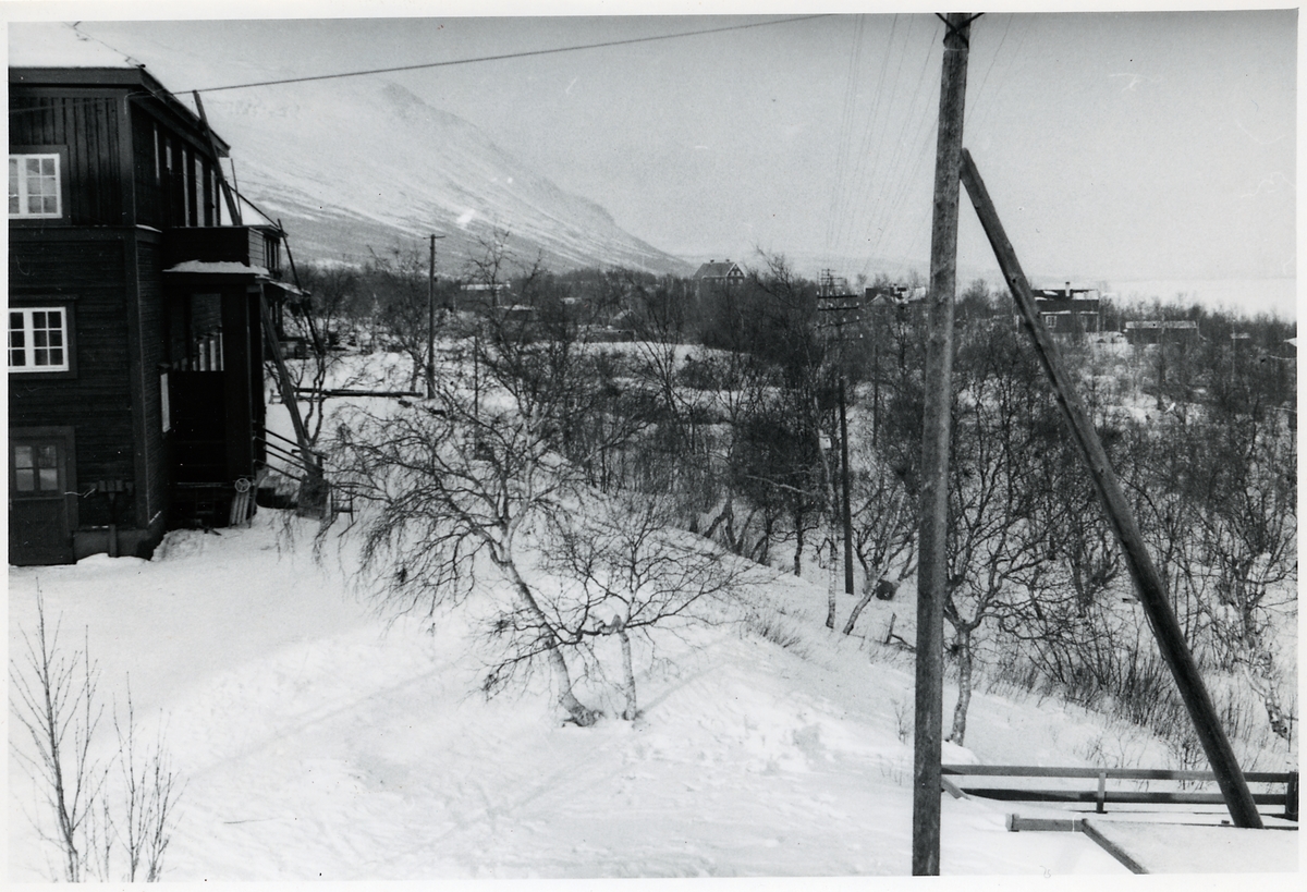 Titel: Vy över Abisko med gamla skolan till vänster.