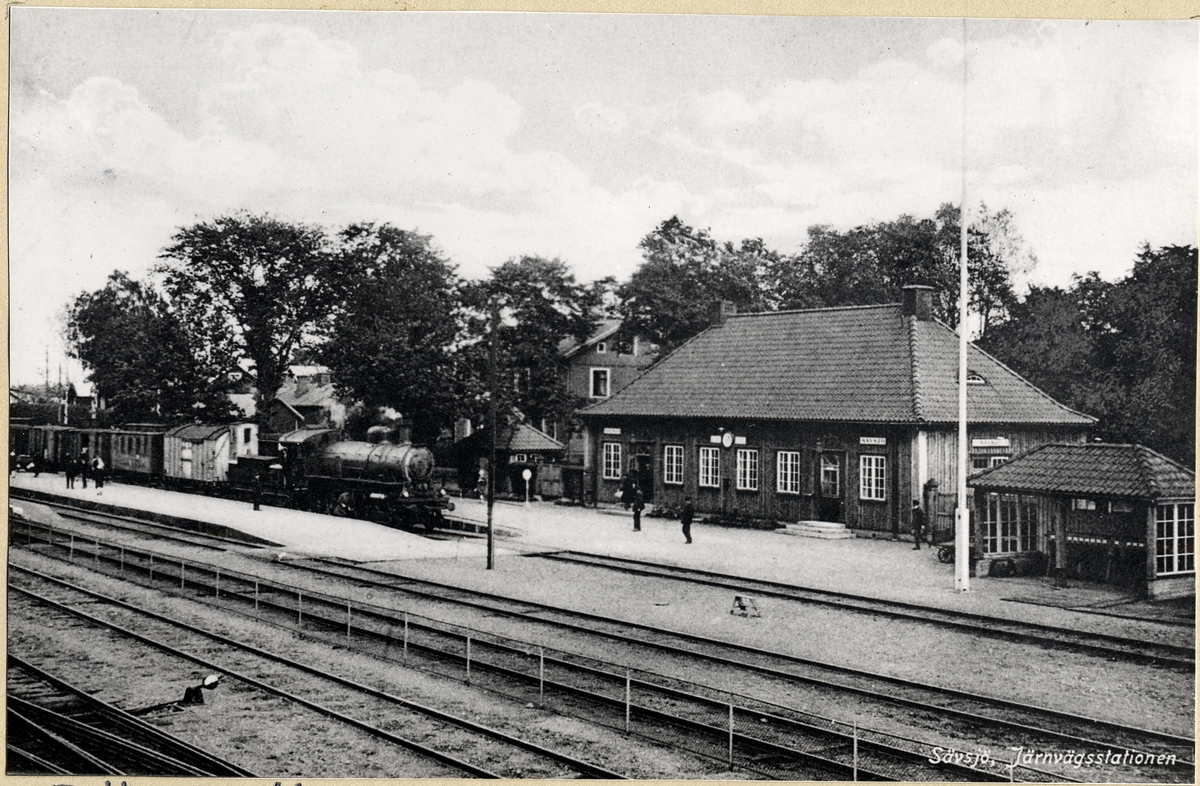 Sävsjö station 1933. Stationen ej elektrifierat före 1933. Den 23/7 1933 var elektrifieringen klar på linjen Alvesta-Nässjö. Loket är från NVHJ.