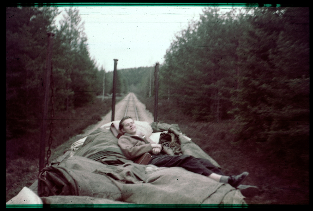 Erik Walde på en godsvagn, HälleforsFredriksbergs Järnvägar.