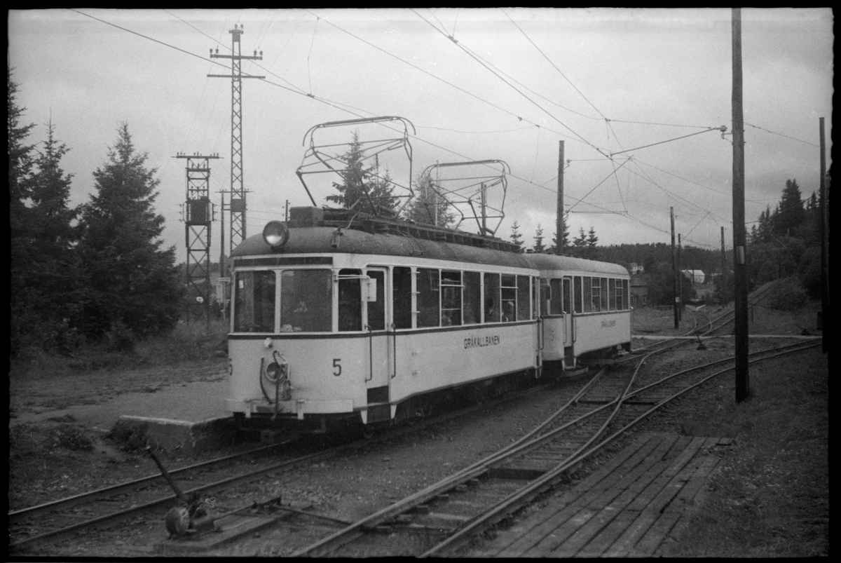 A/s Gråkallbanen, GB spårvagn 5 och släpvagn 55 på Gråkallbanen vid Munkvoll.