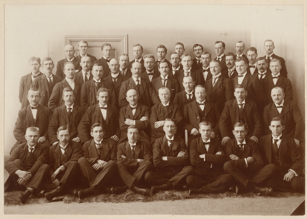 Rad nr 3 fr. v. : K. G. Alba, A. E. Pettersson, Oskar Norgren, J. E. Söderström, Alex. Leonardsson, Hugo V. Roos, Hugo Ahlén, Henrik Persson, K. A. Lundman, K. F. Lundin, Karl Cedervall, John Johansson, P. A. Persson, P. A. Örtlund, G. R. Forss, Rundström, Johansson, G. O. Danielsson, Eskil Lindskog.