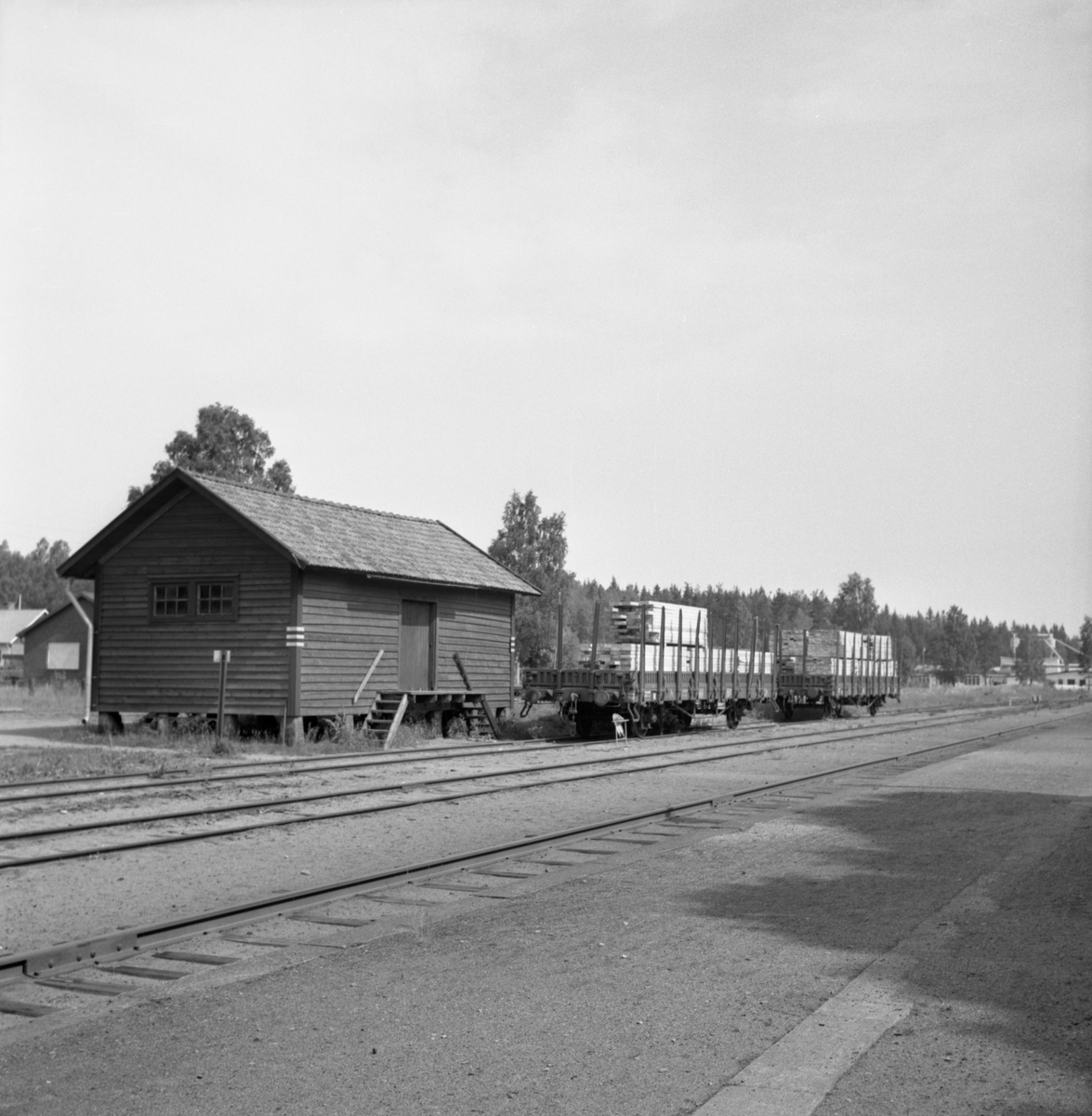 Godsmagasinet, två vagnar lastade med sågat virke.
