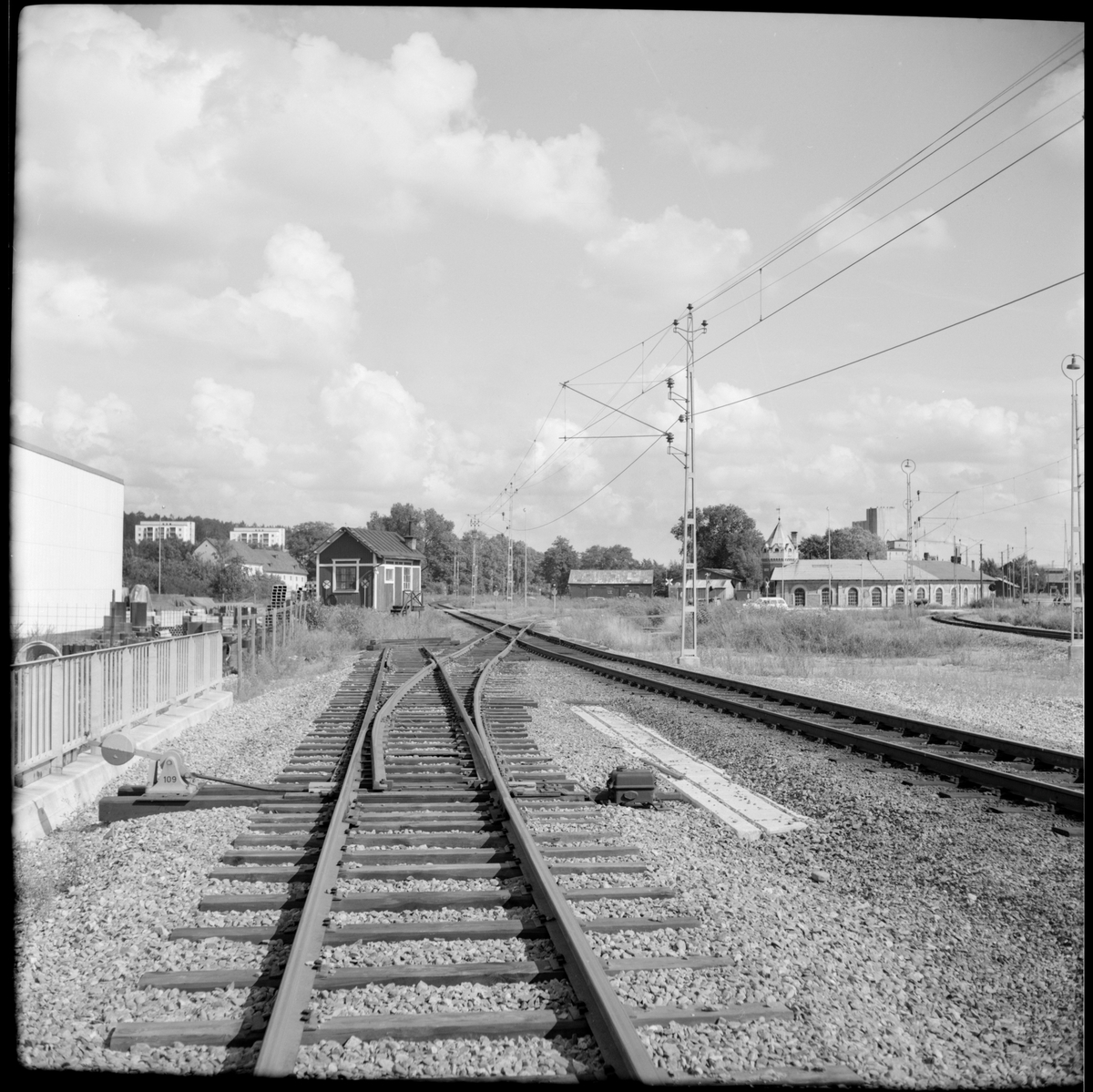 Husbyggnad på bangården i Köping, troligen ett så kallat "Bultarrum". Till höger i bild ses lokstallet och verkstaden.