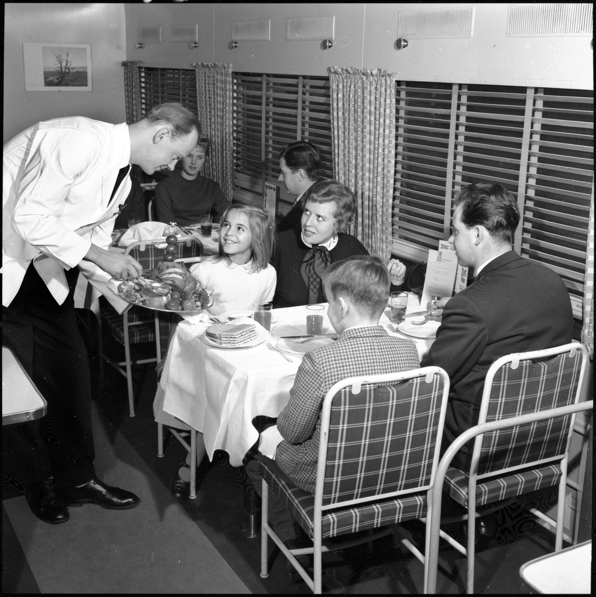 Titel: Statens Järnvägar, SJ Ro3. Interiörmotiv med statister.