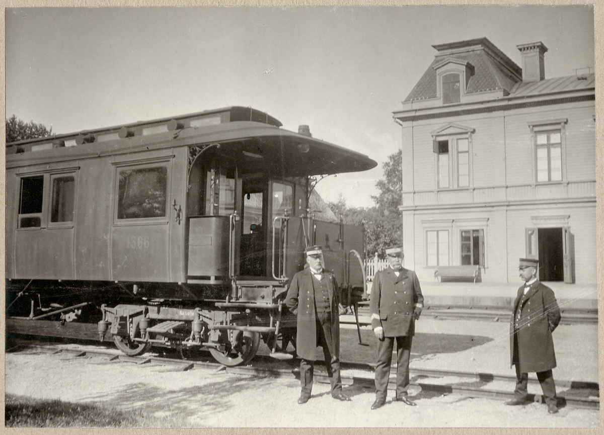 Generaldirektör Fritz Pegelow tillsammans med Överdirektör Victor Klemming och Distriktschef Bror Olof Ekman i Sundsvall. Statens Järnvägar, SJ Ao3 1366.