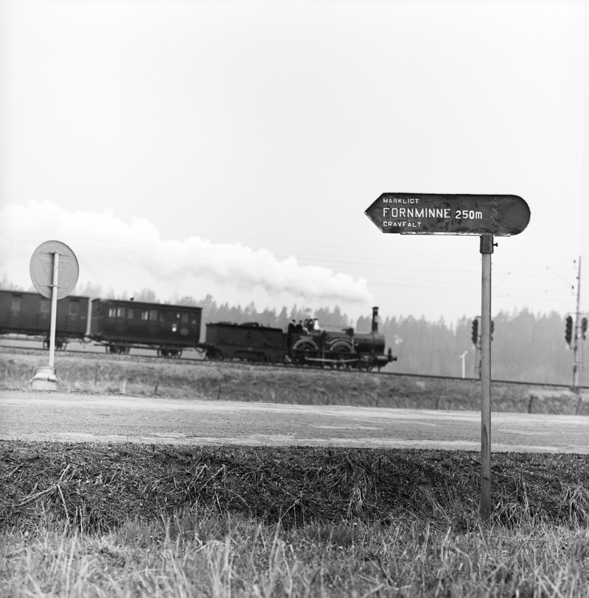 Historiska tågets resa från Stockholm till Göteborg för invigningen av Tåg 62. Sträckan Flen-Katrineholm. SJ B 3 "Prins August". KHJ CD 13. SJ C 182