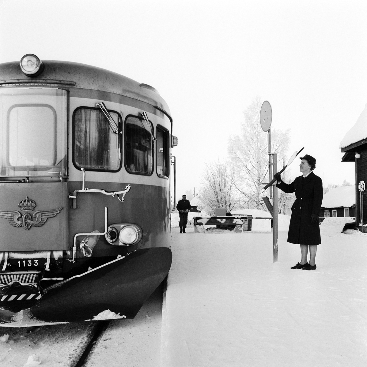 Inlandsbanan. SJ YBo8 1133. Kvinnlig tågklarerare