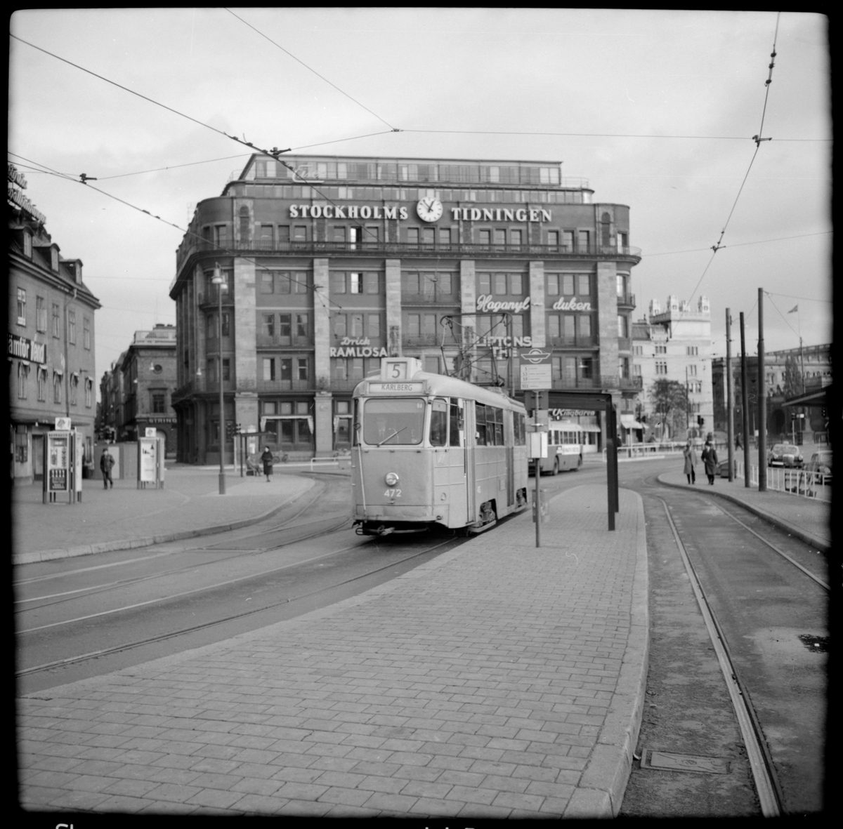 Aktiebolaget Stockholms Spårvägar, SS A26 472 "mustang" linje 5 Karlberg - Gustaf Adolfs torg - Östra station vid hållplats Tegelbacken.