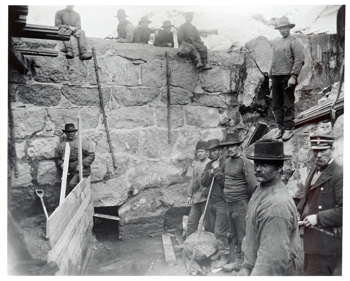 Dammbyggnad vid gamla Vassijaure (Kaderjokk) Riksgränsbanan.