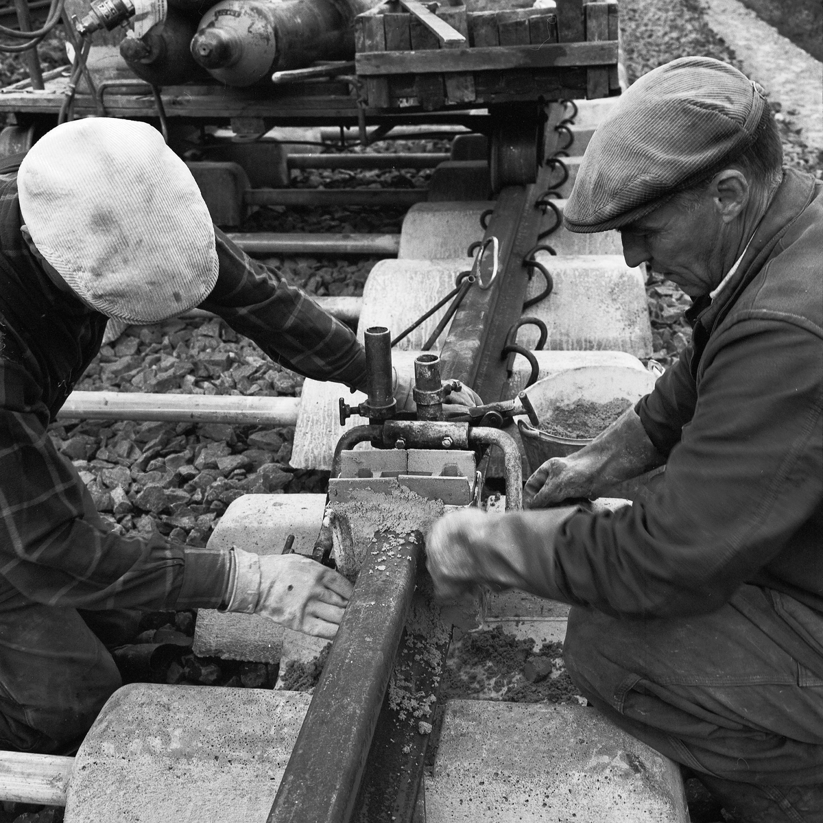 Spårarbete, Flisby-Solberga. Svetsar skarv