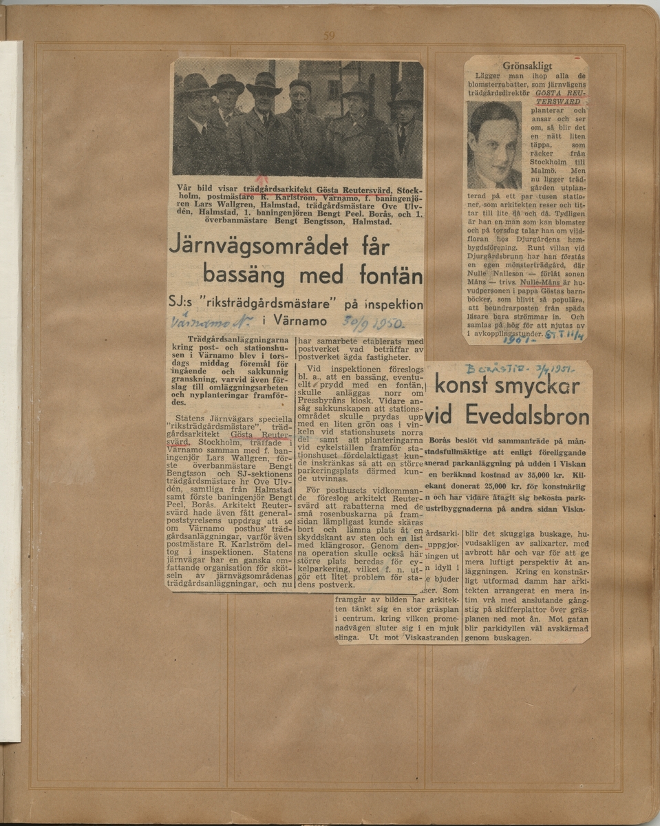 Tidningsklipp ur "Uppsatser om trädgårdar m.m. som på ett eller annat sätt beröra Gösta Reuterswärd. Samlade av Ernst Hj."