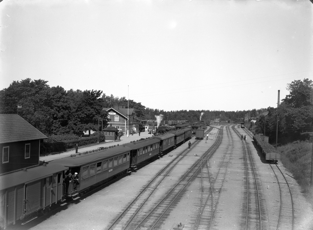 Stationen anlades 1885 och ombyggdes 1937-38 fullständigt. Då tillkom även byffé och kiosk för Sv. Pressbyrån. Även byggnadens exteriör förändrades då de gamla träbyggnaderna försågs med rappning. 1946 omlades och moderniserades spårsystemet. Stationshuset ombyggt 1937 Lokstall byggt 1884 med två lokplatser, rivet 1906. Nytt lokstall 1906.
