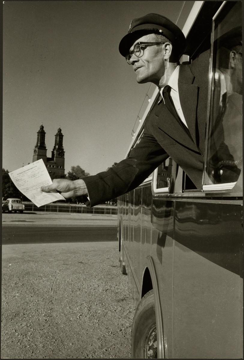 Titel: Reportage i Konduktörsposten om en bussförare vid Trafikaktiebolaget Grängesberg-Oxelösund Järnvägar, TGOJ i tjänst.